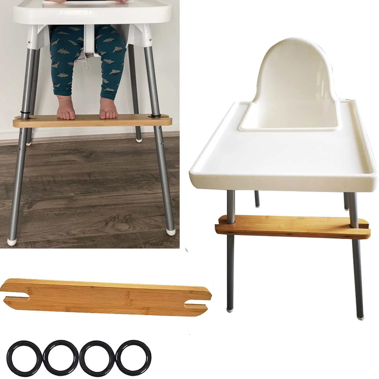 My top 4 tips for a fuss free Christmas. This footrest attaches to the IKEA Antilop Highchair with the help of 4 included o-rings. It straps on and produces a stable rest point for feet aligned under their knees.